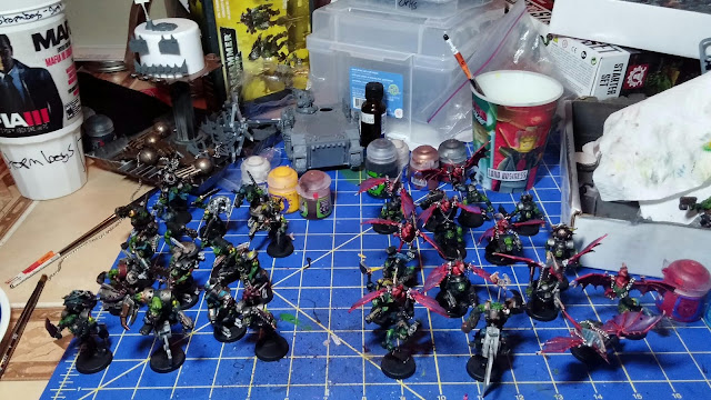 Over the past few weeks, I've been working on some stormboyz. The manager at my local GW thought itd be crazy awesome and unique to have stormboyz represented by some boyz chined to some 'nid gargoyles.